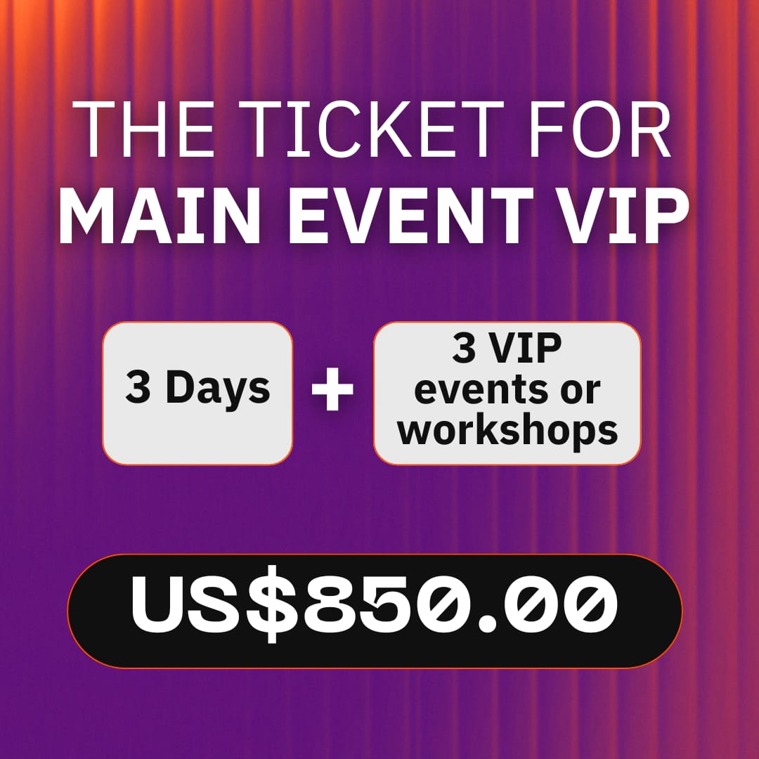 This VIP ticket provides you with a first-class experience including preferential access to 3 VIP events or workshops, and premium networking opportunities.